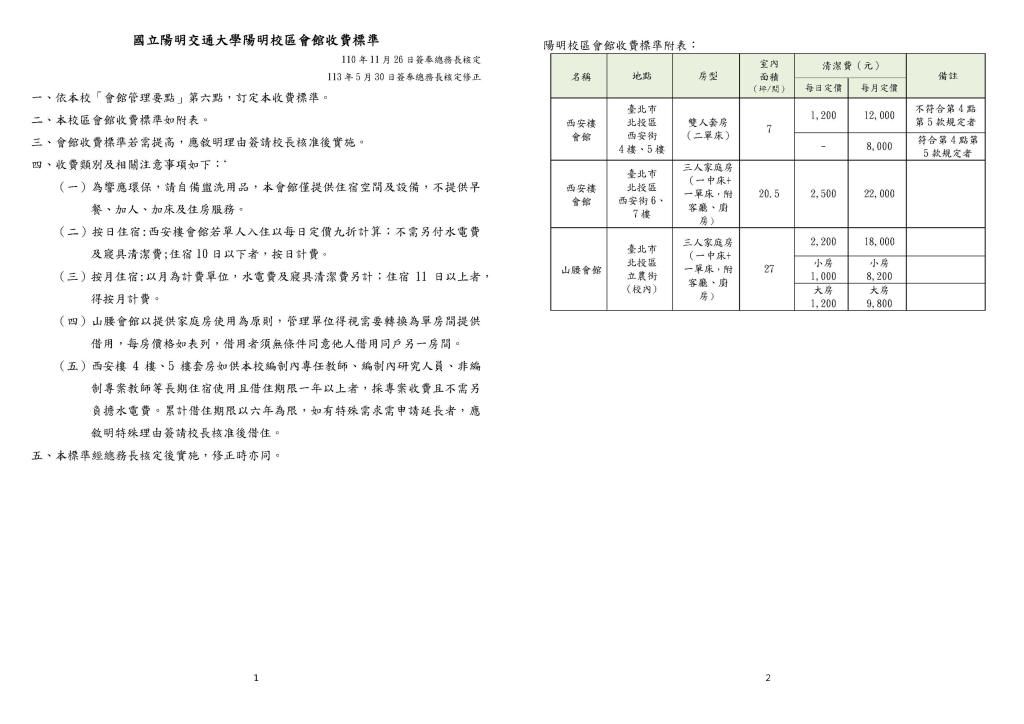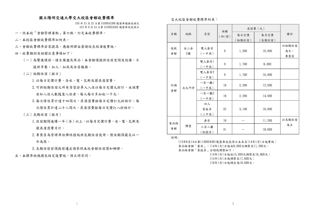 •Yangming Campus: 151 units (hilltop houses, hillside village, foothill apartments), with 116 allocated to long-term faculty/staff and 35 reserved for newly appointed faculty. Rents are indexed to the building’s age and set at one-third of the market rate to ensure affordability. The University conducts annual condition assessments and budgets for repairs and upgrades.