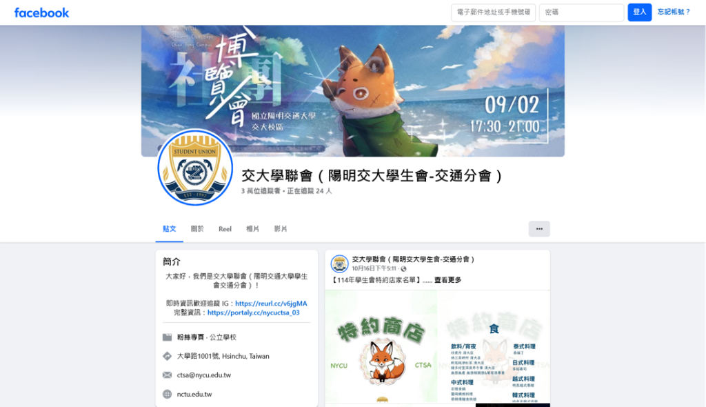 5. NYCU Student Association – Chiao Tung Campus Facebook