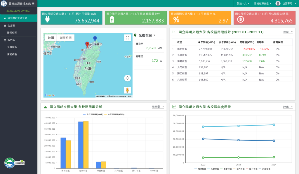 NYCU established the Energy Conservation Promotion Committee in 2021 with the aim of becoming a sustainable green university. The Committee is tasked with setting energy-saving targets, reviewing departmental strategies, and implementing initiatives to optimise energy efficiency. Key measures include the introduction of the ISO/CNS 50001 Energy Management System to monitor electricity usage and the launch of the Buildings Electricity Bill Sharing Mechanism to promote accountability. To further enhance sustainability, outdated equipment has been replaced, hot and cold ducts in machinery rooms have been separated, and smart water meters and rainwater harvesting systems have been installed. These efforts, along with the integration of solar power and AI-driven HVAC systems, form the core of NYCU’s long-term strategy to reduce energy consumption and carbon emissions.