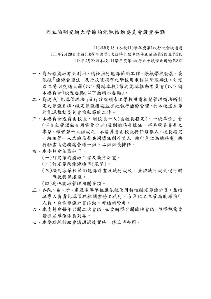 3. NYCU Directions for the Establishment of Energy Conservation Promotion Committee
