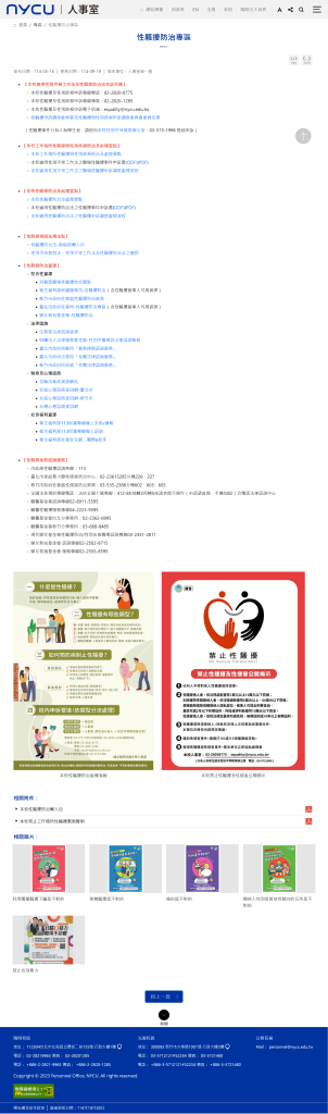 1. NYCU Workplace Sexual Harassment and Gender Discrimination Prevention & Handling Guidelines (Announcements on Our Personnel Office website) https://hr.nycu.edu.tw/userfiles/hrch/files/20250618110133759.pdf