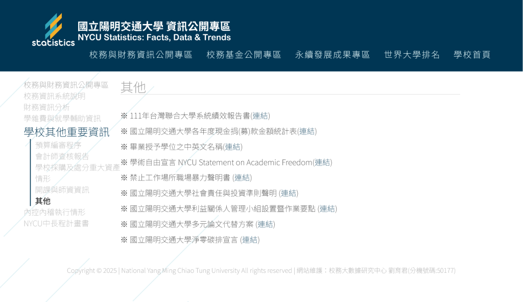 2. NYCU’s Statement on Academic Freedom (Announcements on Our “NYCU Statistics: Facts, Data & Trends” website )