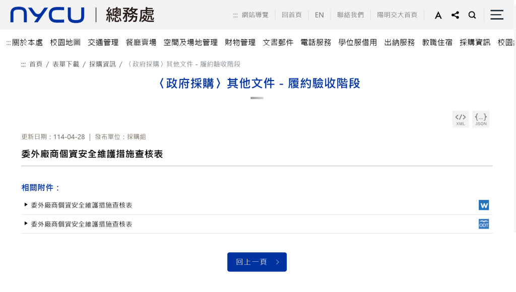 3. NYCU Checklist for Outsourced Vendors’ Personal Data Security Measures